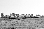Flach und ohne Höhepunkte verläuft die Anschlussbahn nach Uentrop Süd durch das Gelände, sodass die wenigen Fotostellen auch noch fast alle gleich aussehen. Am 06. Mai 1983 kommt RLG D 64 vom DuPont-Werk zurück und wird am Streckenkilometer 0,5 bildlich festgehalten.