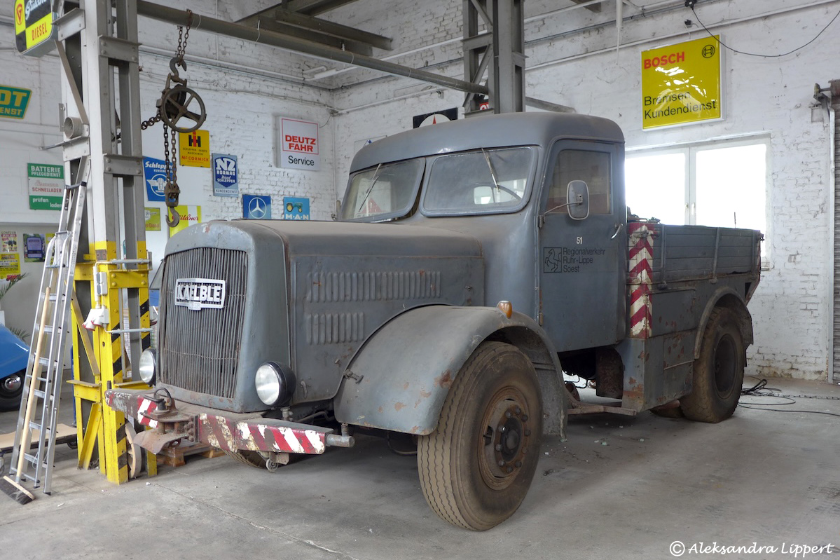 Kaelble K 631 ZR ⁄ 52, Baujahr: 1952, (ex DB 47-151), Amtl. Kz.: AR-T 462, später SO-AZ 56, Lackierung: Bundesbahngrau, Verbleib: Nutzfahrzeugmuseum Willich e.V.