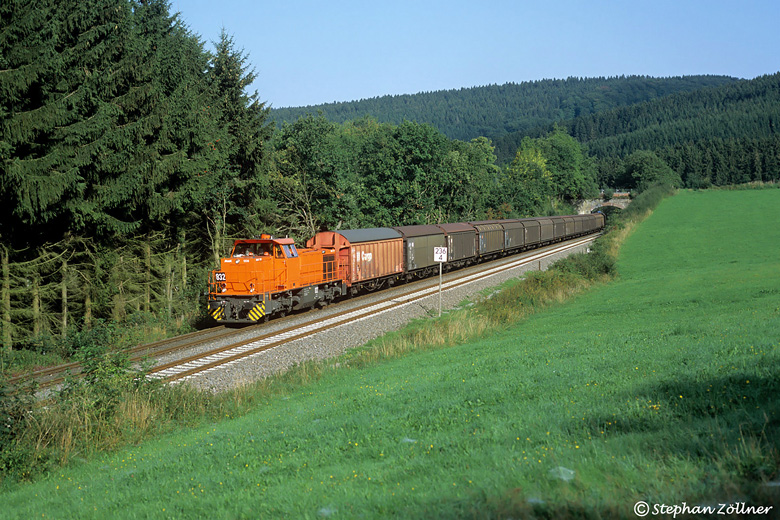 Auf Grund von Fahrzeugmangel und Wirtschaftlichkeitsaspekten mietete die nun Railion genannte Gütersparte ab Herbst 2006 diverse Maschinen des Vossloh-Typs G 1206 an, um damit die Sandwichtraktion mit zwei 294 zu ersetzen. So konnte erstmals am 04. September 2006 die orangefarbene RAG 832 mit der zur damaligen Zeit TK-FZT 54381 genannten Übergabe in Bestwig gesichtet werden.